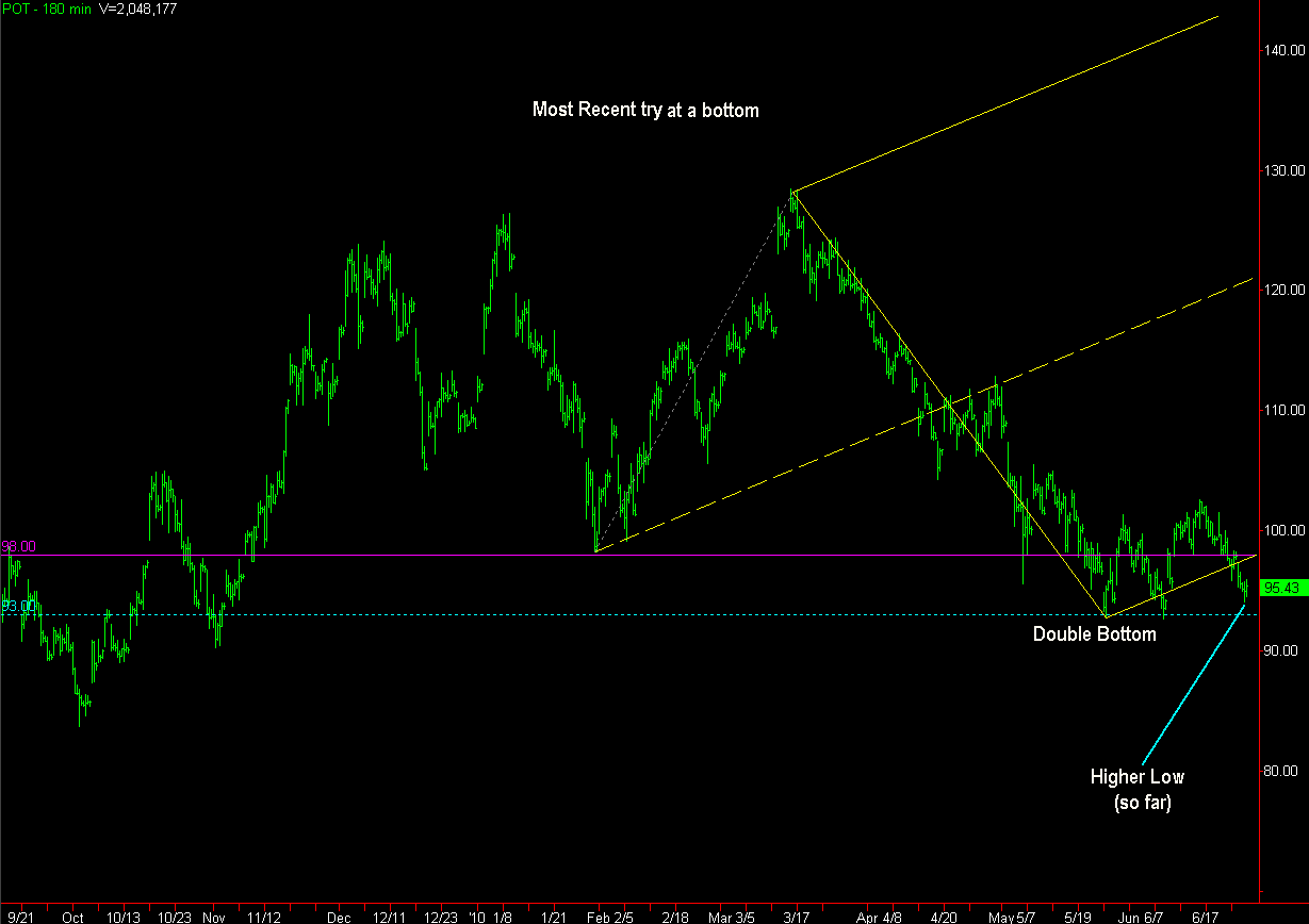 Currently POT is in a position where price may be putting in a bottom of some sort: